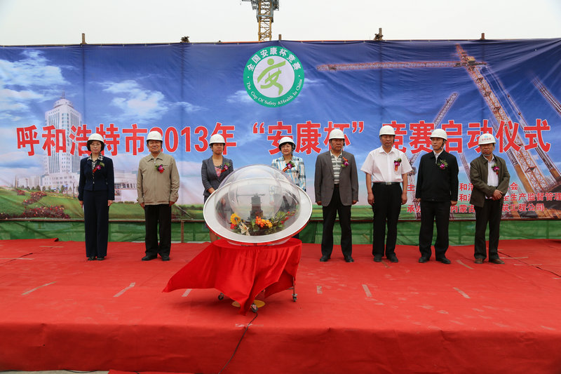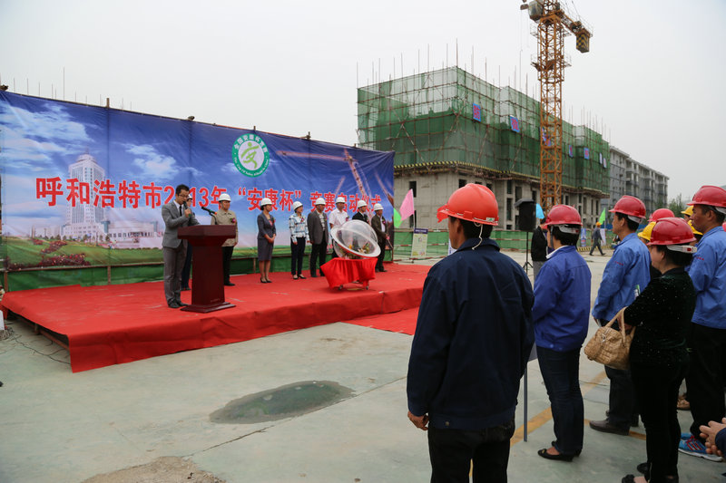 516上午,呼和浩特市总工会与呼市安监局在内蒙古第三建筑工程公司二十六项目工程现场联合举行2013年“安康杯”启动仪式。
