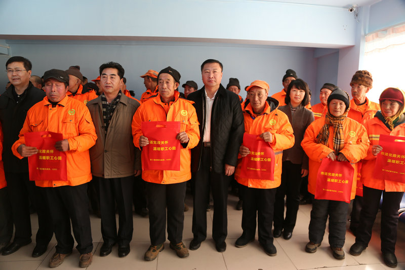 2月9日,由自治区、呼和浩特市两级工会共同发起的“关爱首府环卫职工健康,派送温暖礼包”专项行动启动仪式在内蒙古工人疗养院举行,此次活动作为“两节”送温暖活动的一部分,集中为呼市地区的3000多名困难职工提供了包括一份价值600元左右健康体检、一本《五月风》杂志和一些劳动经济权益宣传知识手册在内的“温暖礼包”。启动仪式由呼和浩特市总工会副主席张瑞新主持,自治区总工会副主席张宽冶出席启动仪式并讲话,呼和浩特市人大副主任、市总工会主席斯钦毕力格、自治区总工会保障工作部部长王玲、呼和浩特市回民区副区长王再明、呼和浩特市回民区环卫局局长张豫等参加了启动仪式。呼和浩特市环境卫生管理局党组书记、局长盛宇,内蒙古工人呼和浩特疗养院院长温岚参加仪式并发言,启动仪式现场为50名首府一线环卫职工代表派送了“温暖礼包”。