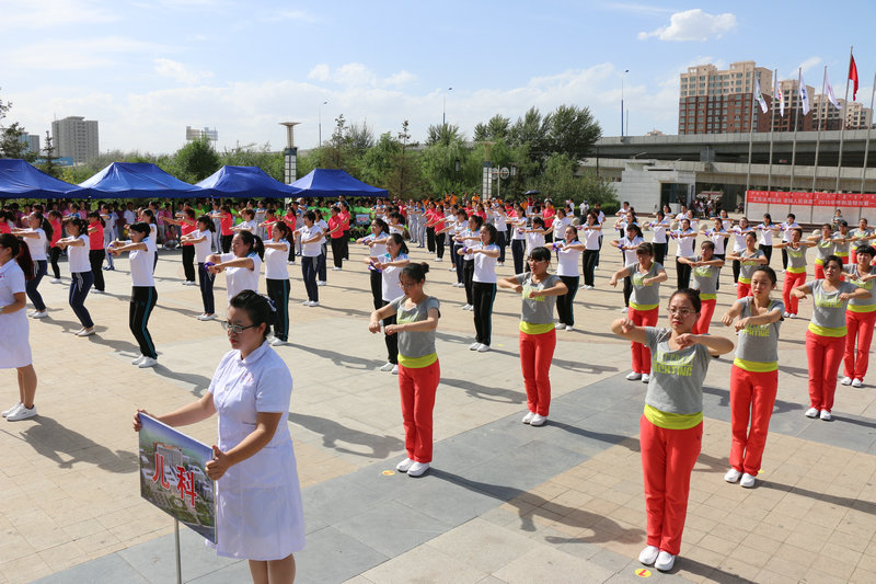 为增强广大职工体质,营造和谐文化氛围,积极响应全民健身活动,18日下午,“发展体育运动,增强人民体质” 2015年呼和浩特市第一医院职工广播体操比赛在我院门诊楼前广场举行并取得圆满成功。共有12支代表队,300余名职工参加比赛。