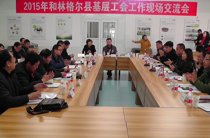12月4日,和林格尔县基层工会工作现场经验交流会在和林县盛乐园区蒙草研究院举行。自治区总工会组织部副部长景志刚、呼和浩特市总工会副主席张普刚,基层部副部长孟庆燕出席交流会。托县总工会主席路永堂、清水河县总工会主席张文明应邀参加本次现场交流会。35家企业工会主席及工会干事参加了现场交流会。