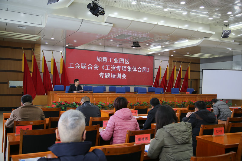 为进一步提高园区工会干部的专业素质,依法保障职工和企业的合法权益与经济利益,维护劳动关系和谐稳定, 11月30日,如意工业园区工会联合会在如意管委会举办了工资专项集体合同专题培训班,驻园区30余家企业工会主席和企业代表参加了培训。