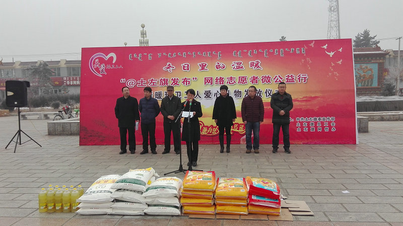 12月24日,土左旗总工会与土左旗宣传部联合举办的“冬日里的温暖--情暖环卫工人”活动在旧政府广场举行,280名环卫工人领到了旗总工会发放的价值300元的米、面、油爱心大礼包。