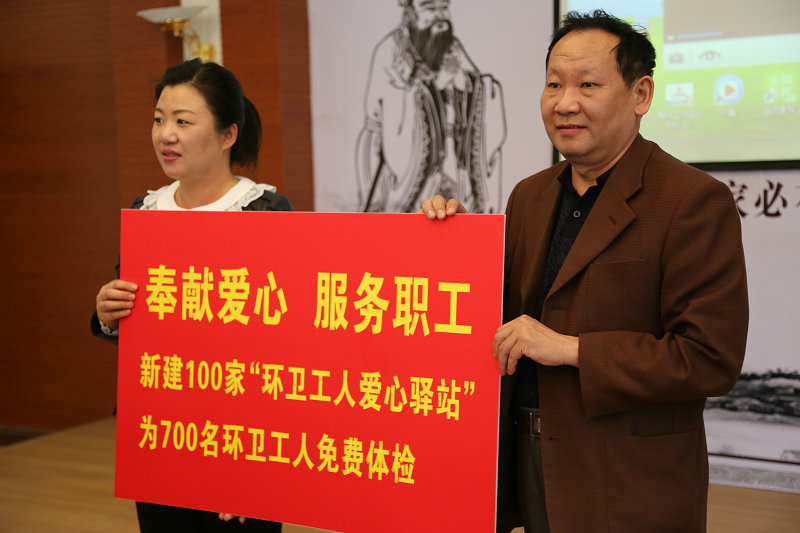 为进一步营造共同关心关爱弱势群体的社会氛围,倡导美在青城、爱在青城,使呼和浩特成为一座温暖美丽、充满爱心的城市,为我市创建全国文明城市做出积极贡献,在“发善心、行善事”环节,市总工会决定今年继续新建100家“环卫工人爱心驿站”,同时将拿出经费为700名环卫工人免费体检,并举行了“爱心驿站”和“爱心妈咪小屋”援建仪式。