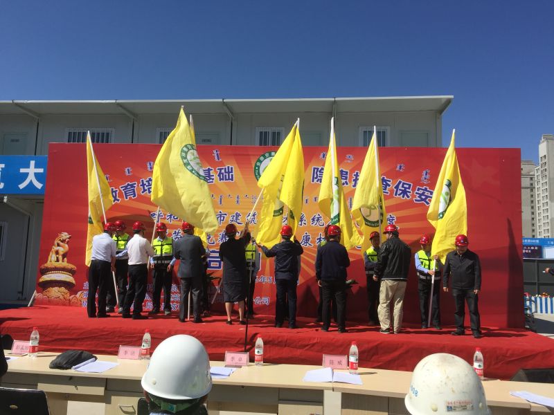 5月26日上午,呼市建筑建材公路运输系统“劳动竞赛”暨“安康杯”竞赛活动启动仪式在中建二局一公司内蒙古分公司永泰城项目部隆重举行。自治区总工会,呼市总工会,呼市安监局及中建二局一公司相关领导以及各级新闻媒体和施工人员300多人参加了启动仪式。仪式上,中建二局一公司党委副书记致欢迎词。包苏和主席部署了呼市建筑建材公路运输系统2016年“劳动竞赛”和“安康杯”相关工作,会上同时举行了赠安全旗,赠书及颁发自治区“五一”劳动奖状,中建二局一公司内蒙古分公司呼市在建项目工会联合会牌匾等相关活动。市工会劳动保护部部长任剑平主持了启动仪式。