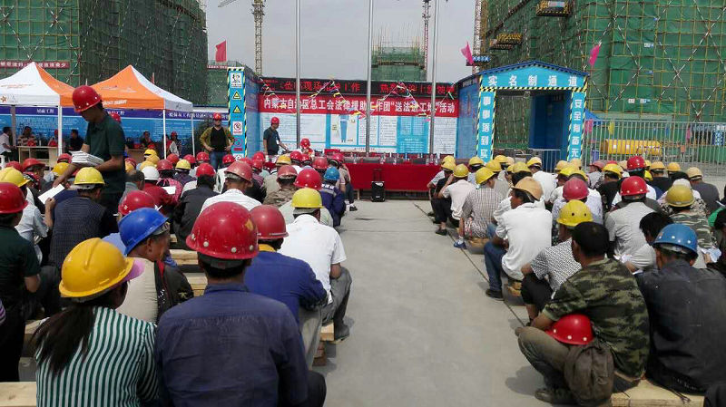 5月31日下午,在自治区总工会法律援助工作成立2周年之际,呼和浩特市建筑建材公路运输工会,携手自治区法工部、自治区建筑建材化工机冶工会,在内蒙古第三建筑工程有限公司毫沁营回迁工程工地开展了“送法律下工地”活动,区总法援团8位律师参加了活动。法援团向在场的200多名农民工送上了劳动合同法等5种维权知识读本1000余册,送去了茶叶、冰糖等消暑食品。律师们为大家讲解了劳动权益基本知识,为大家提供了法律咨询;同时,为有需要的农民工进行了心理辅导。这次“送法进工地”活动,受到了农民工兄弟们的欢迎。