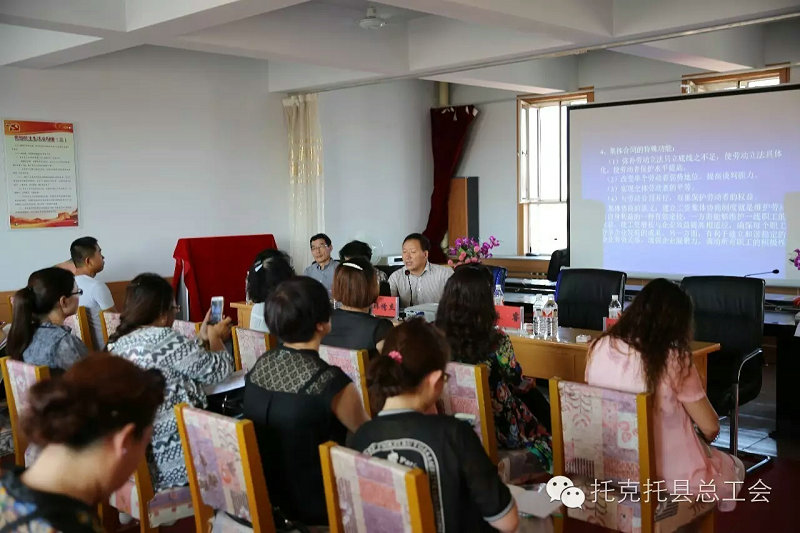 为全面贯彻《呼和浩特市总工会深化集体协商工作规划(2014-2018年)》,加大推进集体协商工作的力度,提升集体协商质量、增强集体合同实效,提高各旗县区总工会及企业工会干部集体协商的能力,呼和浩特市总工会以服务基层,为职工办实事为准则,采取送教上门的方式举办集体协商工作培训班。