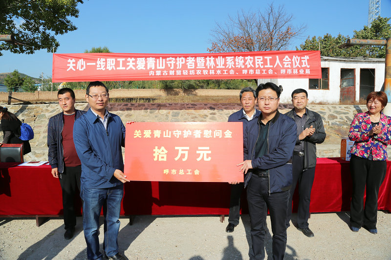 活动中,云利平代表内蒙财贸轻纺农牧业水工会向护林员发放了慰问品,张普刚代表市总工会向护林员捐赠了“关爱青山守护者”专项款10万元,并为新入会的会员颁发了工会会员证和赠送了《中华人民共和国工会法》、《工会章程》。