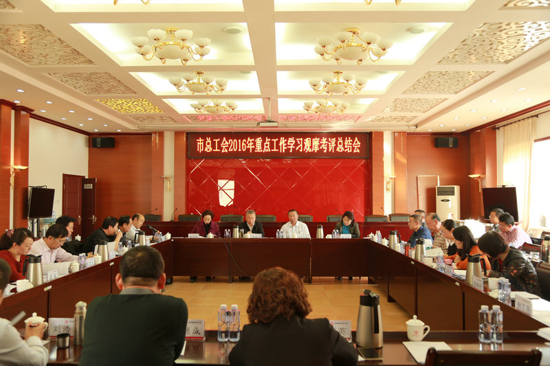 此次考评主要对旗县区工会、开发区工会构建和谐劳动关系工作机制,普遍开展工会组建工作,普遍开展工资集体协商工作,普遍开展劳动竞赛活动,做好困难职工帮扶工作、深化厂务公开民主管理工作的完成情况,服务职工办实事计划完成情况,年末应返还工会经费(筹备金)余额占上年末应返还工会经费(筹备金)余额的百分比及相应经费返还工作机制的建立情况,创新性工作的完成情况进行学习观摩考评。