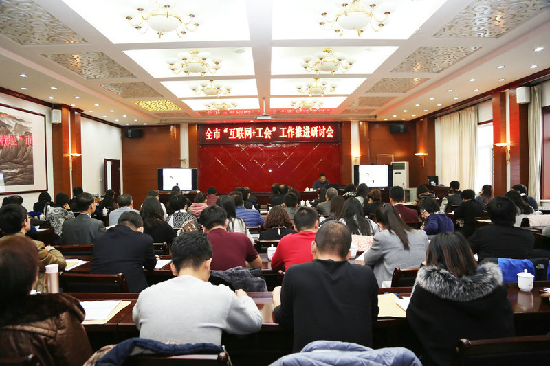 为交流互联网与工会工作融合发展的思路举措,探讨推进“互联网+工会”工作模式,11月18日,市总工会召开全市“互联网+工会”推进研讨会。会议由市总工会副主席张普刚主持,全市各旗县区、开发区工会,各产业工会和机关企事业单位工会主席参加会议。