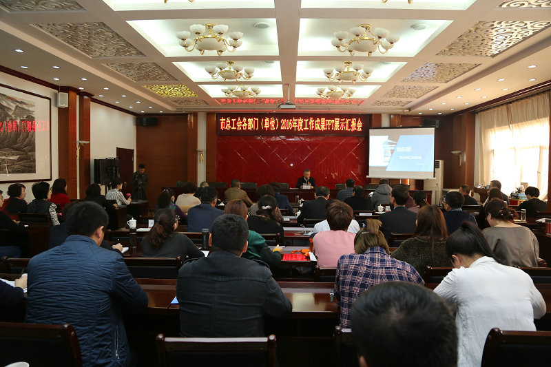 3月3日,市总工会召开了“机关各部门(单位)2016年度工作成果PPT展示汇报会议”。 市总工会机关部室、产业工会和直属事业单位负责人结合党建工作重点展示了2016年工作成果和2017年工作思路。
