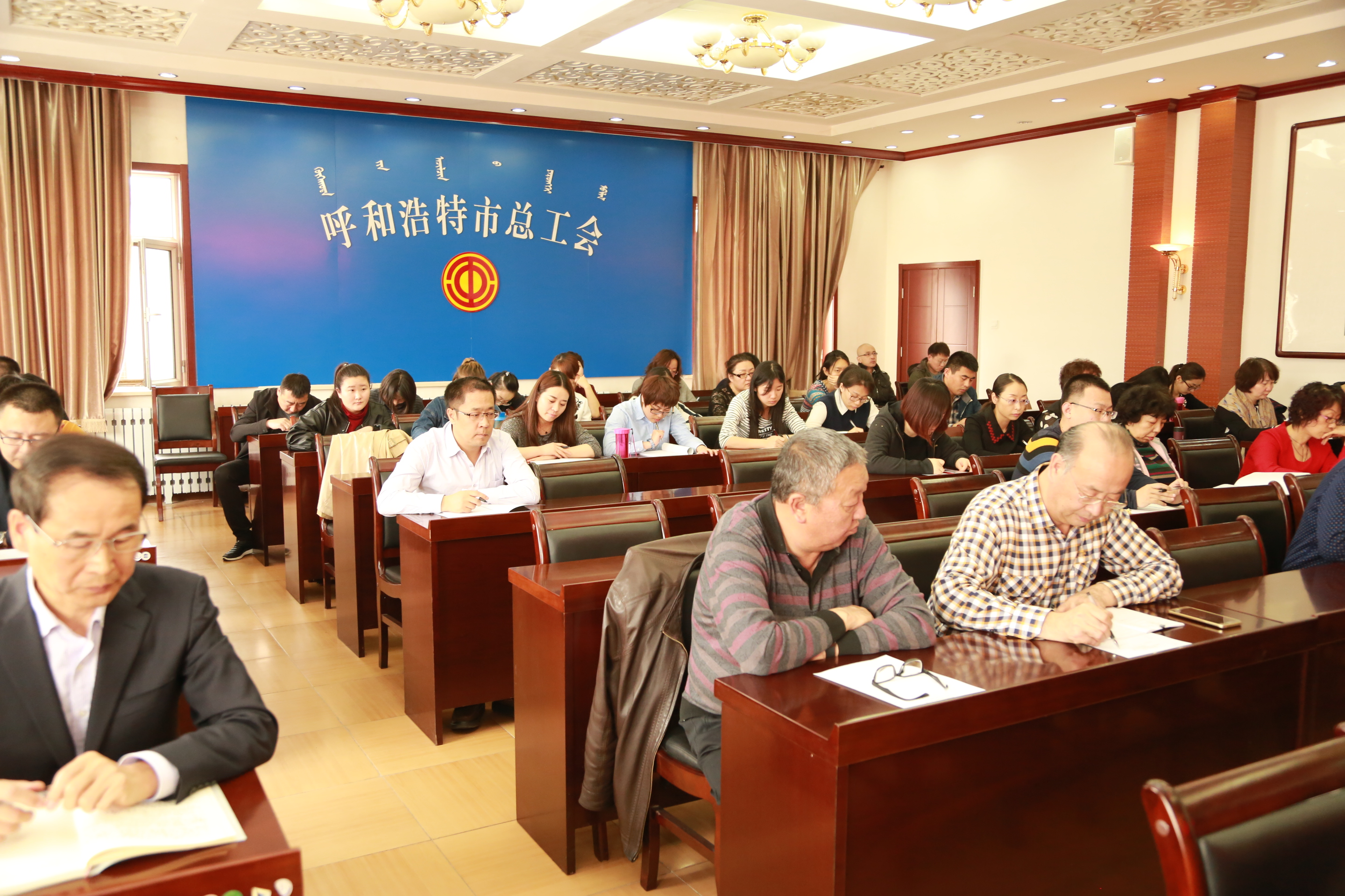 2017年3月22日下午,呼和浩特市总工会召开党组中心组(扩大)学习会,专题学习了市委《呼和浩特市党政干部容错纠错实施细则(试行)》、《呼和浩特市推进领导干部能上能下实施细则(试行)》、《呼和浩特市关于激励引导干部敢于担当攻坚克难暂行办法》三项制度,党组书记、副主席汪俊亭主持会议并领学解读了市委三项制度。市总工会领导班子成员张瑞新、张普刚及机关、直属事业单位全体人员参加了会议。