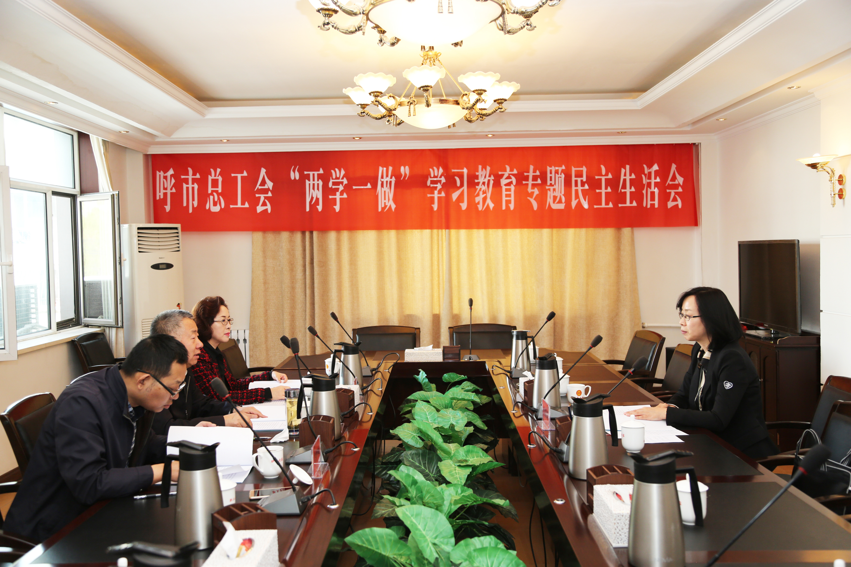 4月28日下午,呼市总工会召开“两学一做”学习教育专题民主生活会。会议由党组书记、副主席汪俊亭主持,党组成员、副主席张瑞新、张普刚参加了会议。市纪委派驻第一纪检组组长刘丽荷到会指导。