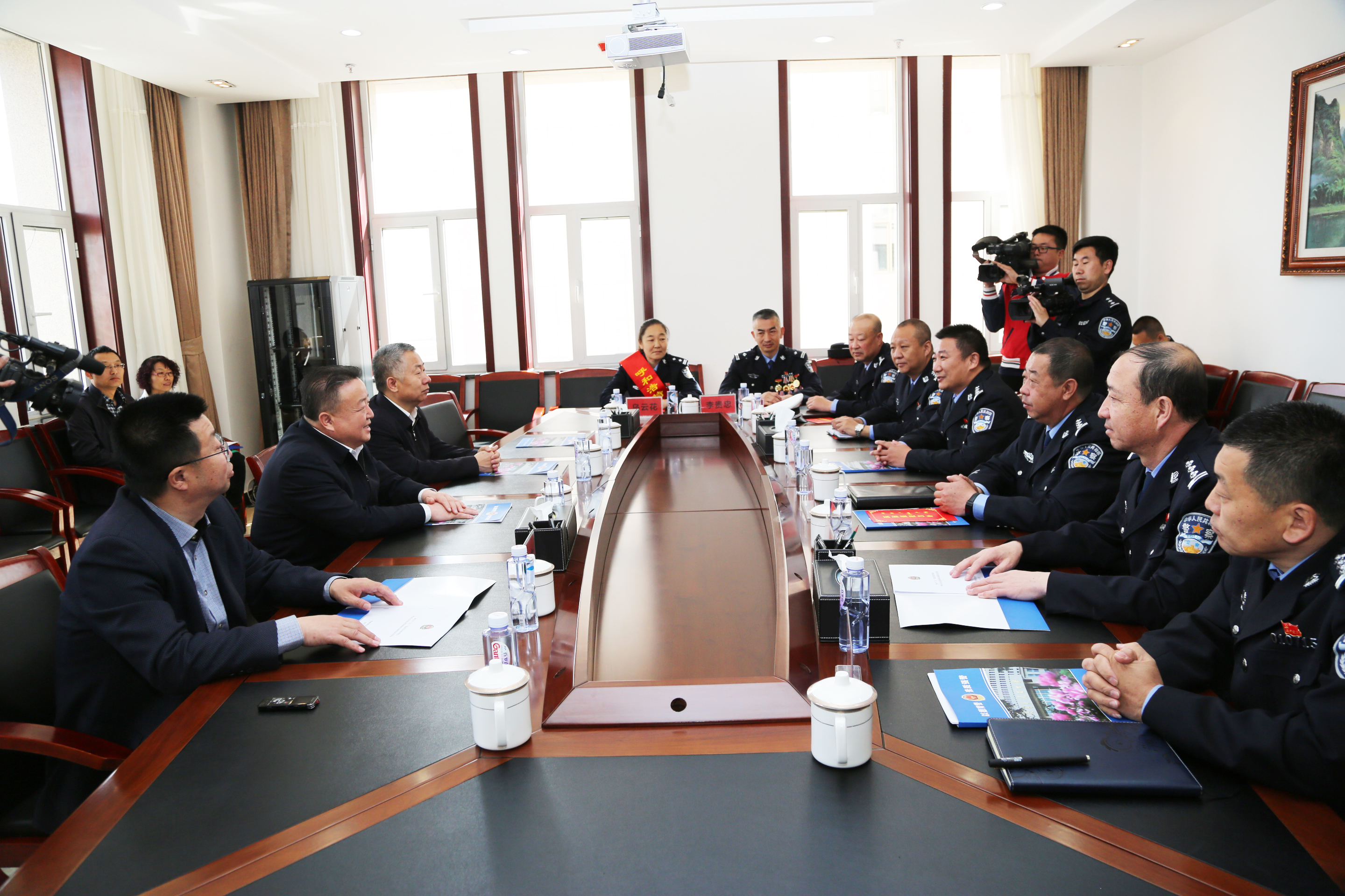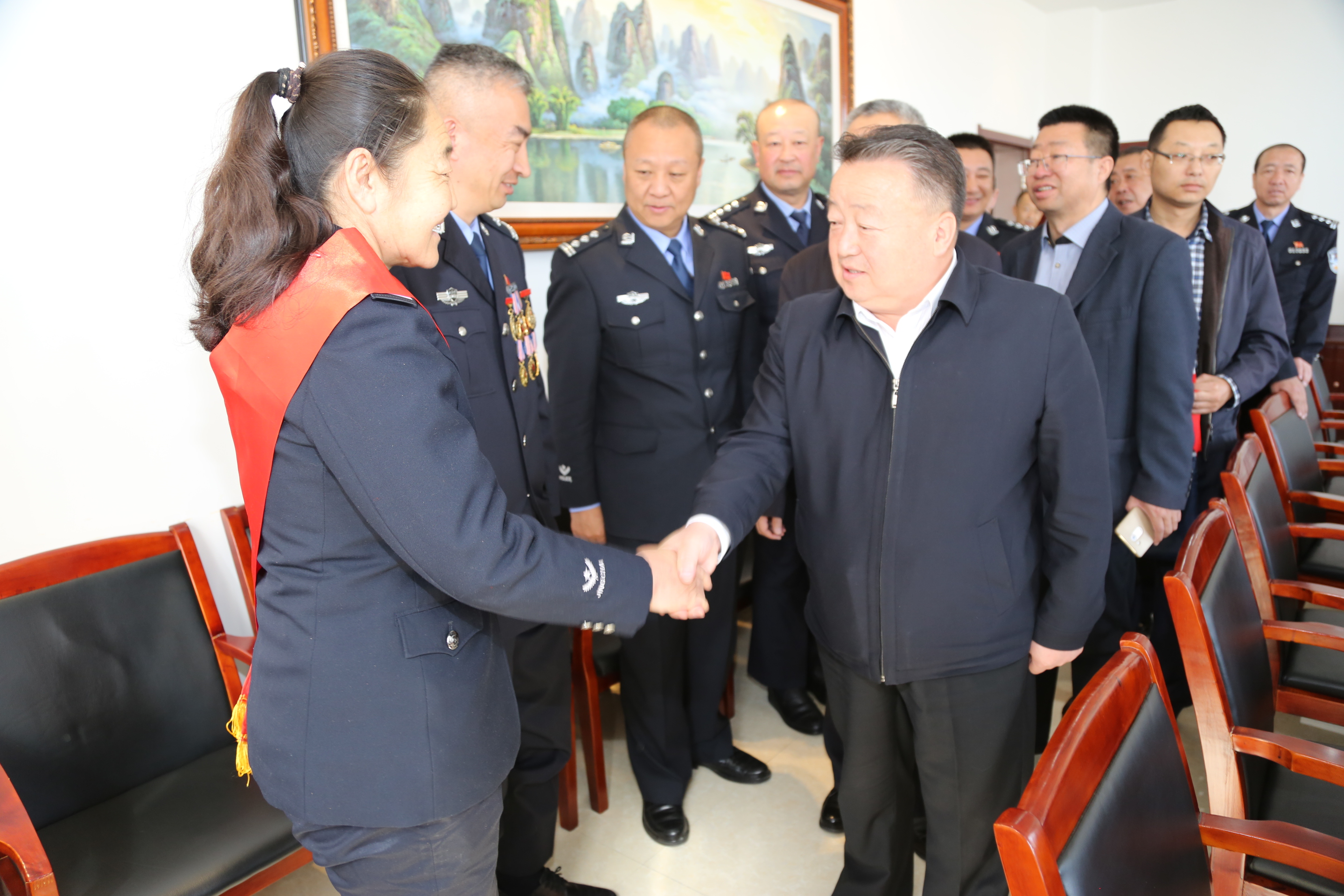 王恒俊一行首先来到新城区公安分局,对公安系统的先进集体新城区公安分局、市公安局交警大队特勤大队、市公安局治安支队和李贵忠、乌云花两位劳动模范进行慰问并送上慰问金。王恒俊对一直以来为维护社会治安秩序、战斗在基层一线的公安民警表示感谢并对获得荣誉称号的先进集合和个人表示祝贺,希望他们继续发扬优良传统,起到先进模范带头作用,依法保障良好的社会环境,维护好群众的合法权益,为全市经济社会发展保驾护航。