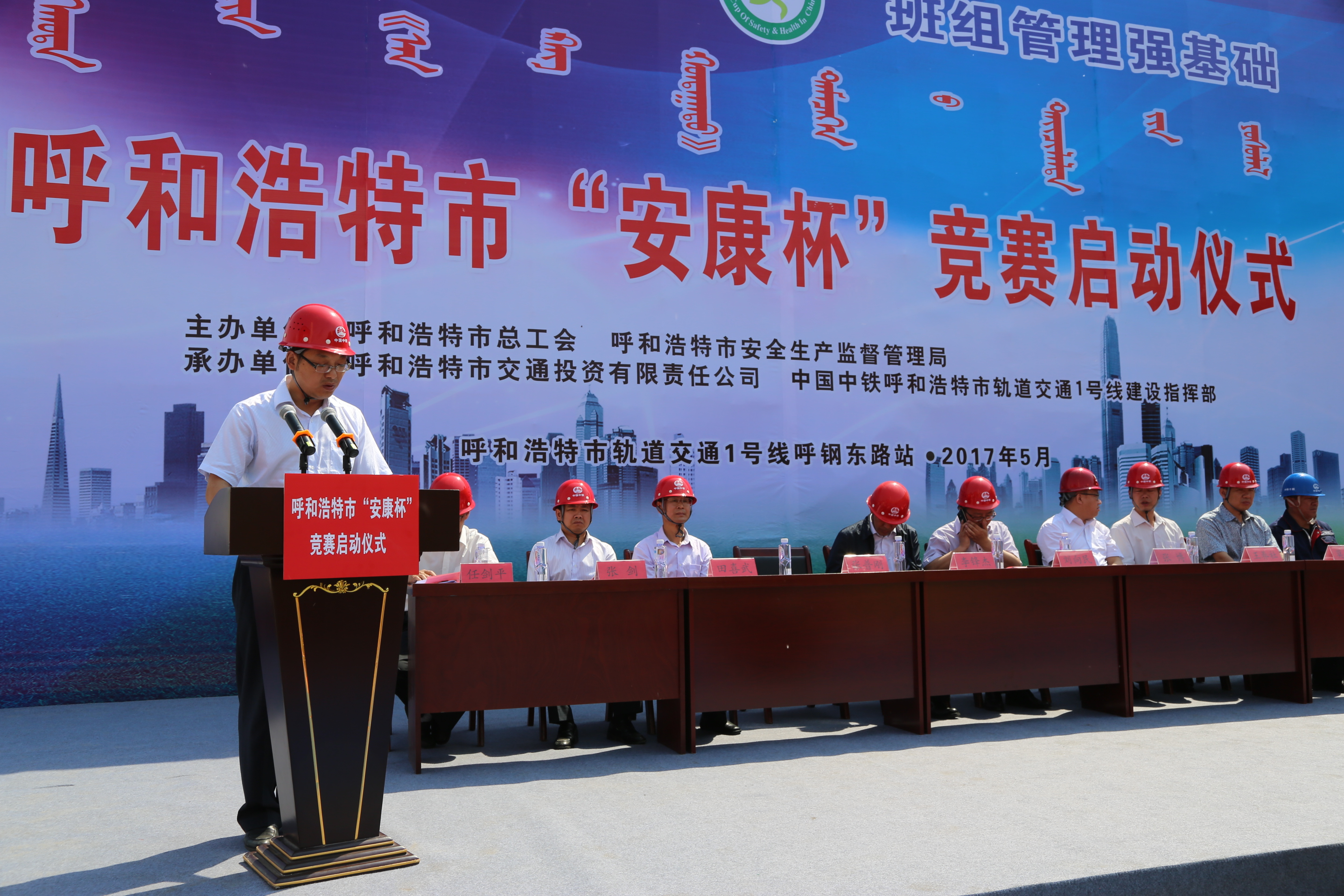 5月19日,呼和浩特市2017年度“安康杯”竞赛启动仪式在新华西街地铁一号线呼钢东路站施工现场举行。自治区总工会劳动保护和经济部部长李锋杰,市总工会副主席张普刚,市安监局副局长刘向民等领导参加启动仪式。