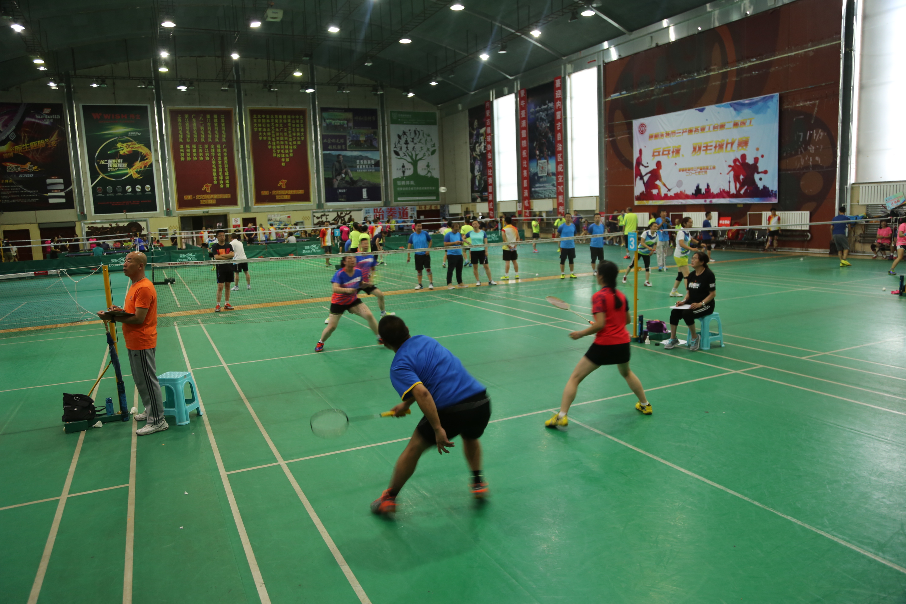 7月6日上午,呼和浩特市三产服务业工会第二届职工乒乓球、羽毛球比赛在赛罕区文体中心开赛。呼市三产服务业工会主席田喜武出席开幕式致辞,三产服务业工会各基层单位工会主席出席开幕式并观看比赛。