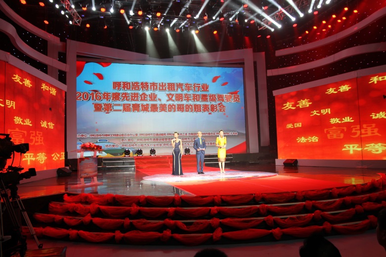 7月25日上午,在呼市广播电视台演播大厅成功举办了呼和浩特市出租汽车行业2016年度优秀企业、文明车和星级驾驶员暨第二届最美的哥的姐表彰会。呼和浩特市副市长毕国臣,市委宣传部副部长、文明办主任李国宏,市交通运输局党组书记、局长王威亮,自治区运管局副局长郭莹,市总工会副主席张瑞新和团市委、市红十字会的相关领导出席了本次表彰会。