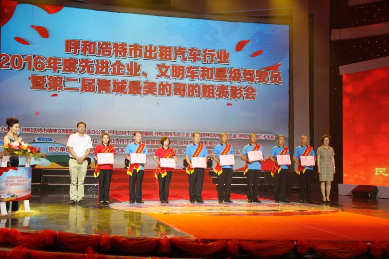 7月25日上午,在呼市广播电视台演播大厅成功举办了呼和浩特市出租汽车行业2016年度优秀企业、文明车和星级驾驶员暨第二届最美的哥的姐表彰会。呼和浩特市副市长毕国臣,市委宣传部副部长、文明办主任李国宏,市交通运输局党组书记、局长王威亮,自治区运管局副局长郭莹,市总工会副主席张瑞新和团市委、市红十字会的相关领导出席了本次表彰会。