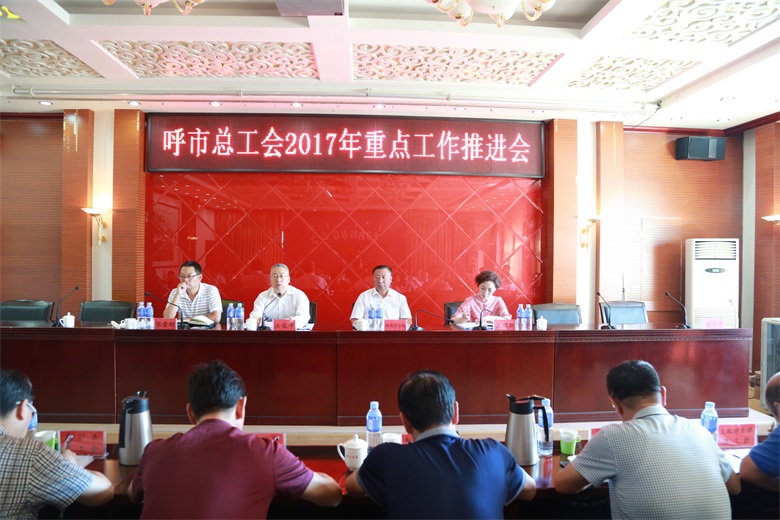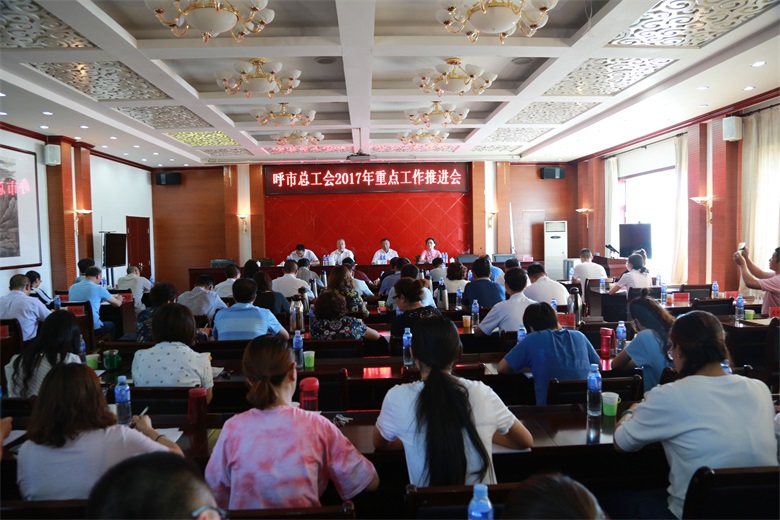 8月16日,市总工会召开2017年重点工作推进会,市人大副主任、市总工会主席斯钦毕力格,市总工会党组书记、副主席汪俊亭,市总工会副主席张瑞新、张普刚出席会议。各旗县区工会主席、市总工会全体参加会议。
