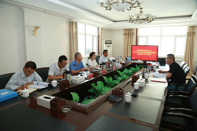 8月17日下午,市纪委派驻第六纪检组副组长徐相瑛督查指导市总工会党风廉政建设和反腐败工作。市总工会党组书记、副主席汪俊亭就我会2017年上半年党风廉政建设和反腐败工作情况作了汇报。