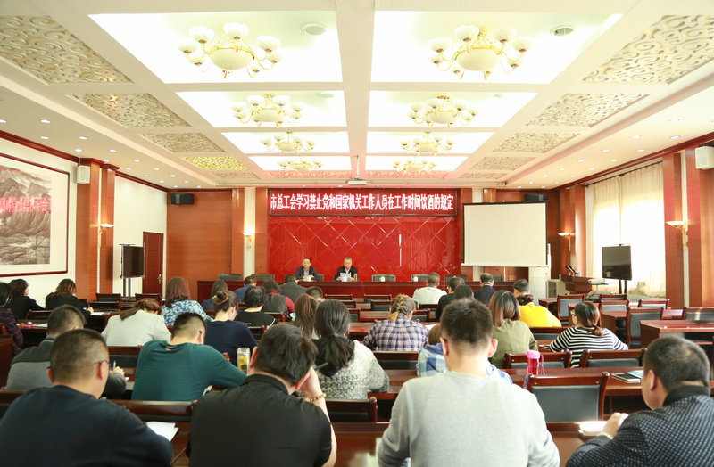 为进一步严明工作纪律,10月26日市总工会召开全体干部大会,集中学习传达了市纪委派驻第六纪检组《关于转发自治区纪委、监察厅〈关于重申禁止党和国家机关工作人员在工作时间饮酒的规定〉的通知及要求》精神。