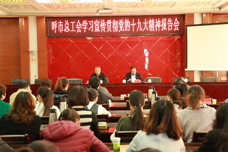 11月15日,呼市总工会邀请呼市市政工程设计研究院副院长兼总工程师、呼和浩特地铁项目总设计师、“内蒙古五一劳动奖章”获得者、党的十九大代表韩佳彤同志为各级工会干部宣讲党的十九大精神。来自全市的100余名工会干部聆听了宣讲。市人大副主任、市总工会主席斯钦毕力格,市总工会党组书记、副主席汪俊亭,市总工会党组成员、副主席张瑞新、张普刚全程参加宣讲。