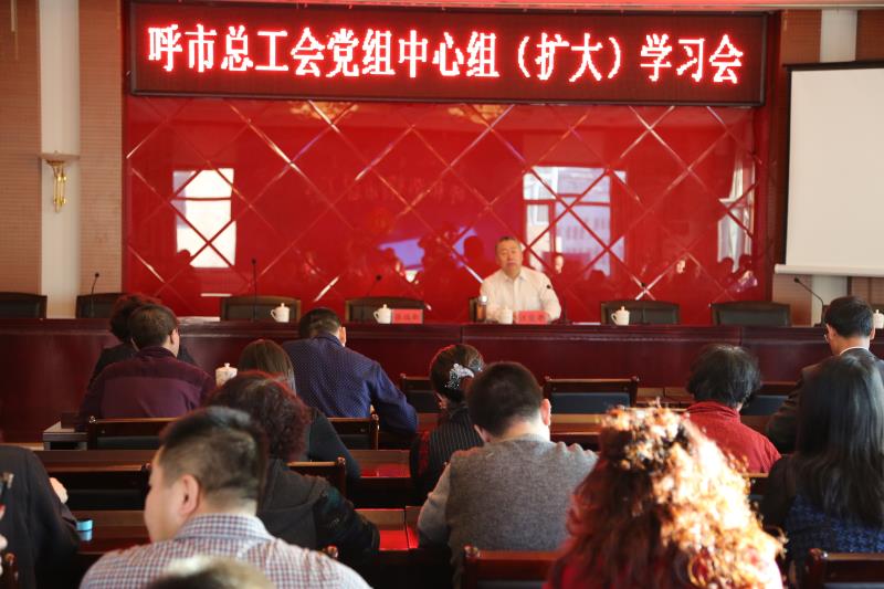 1月18日上午,市总工会召开党组中心组(扩大)学习会,传达学习习近平总书记1月5日在学习贯彻党的十九大精神研讨班开班式上的重要讲话精神、今年呼和浩特市两会精神、市委十二届五次全会暨全市经济工作会议精神。市总工会党组书记、副主席汪俊亭主持会议并讲话。市总工会党组成员、副主席张瑞新出席会议,市总工会机关全体干部参加学习。