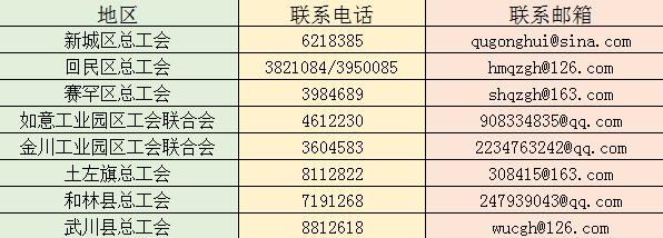 各旗县区总工会联系方式
