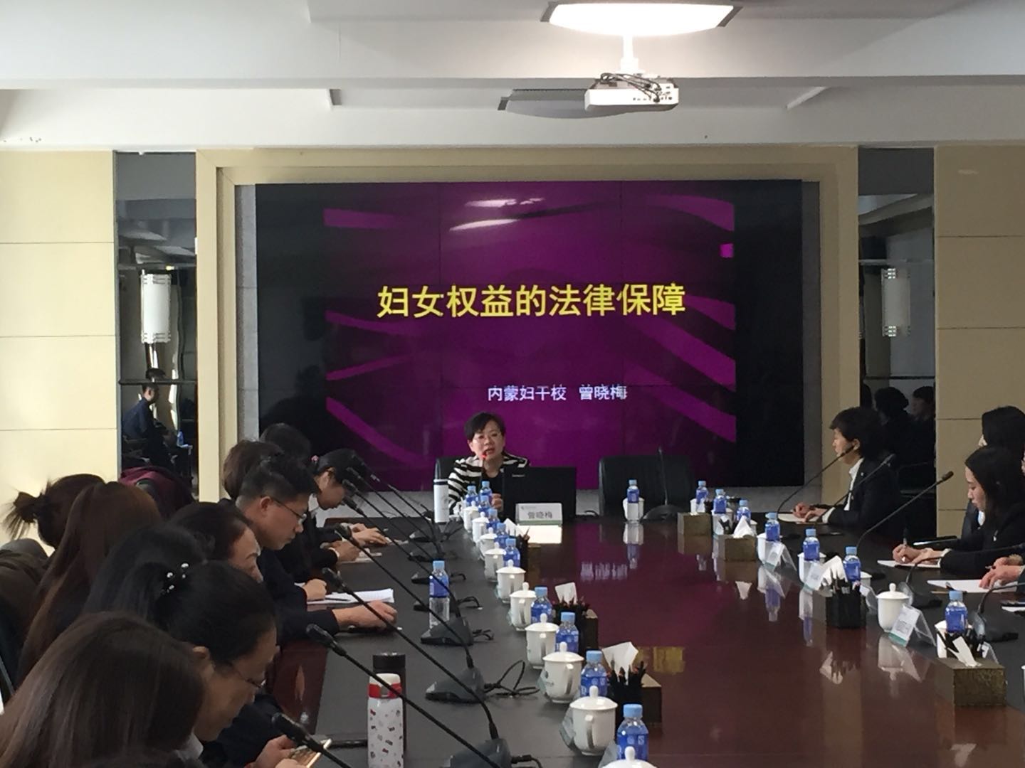 培训班选派内蒙古妇女干部学校的曾晓梅副教授就女职工权益保护法律保障方面的内容进行了系统的讲解。