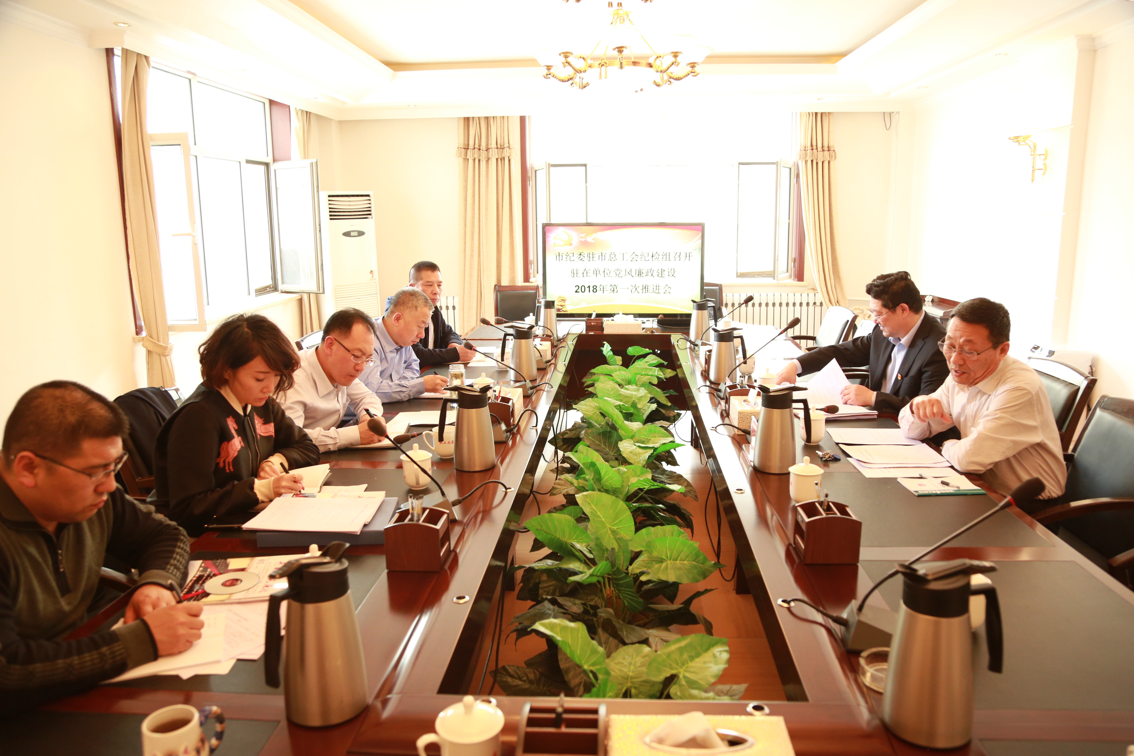 3月20日下午,市纪委驻市总工会纪检组在市总工会召开党风廉政建设2018年第一次推进会,市纪委驻市总工会纪检组组长、市总工会党组成员任增刚主持会议,驻市总工会纪检组副组长铁维镔、市总工会党组书记、副主席汪俊亭、团市委副调研员蔚效成、市妇联副调研员段喜及工青妇三家单位的纪检工作人员出席会议。