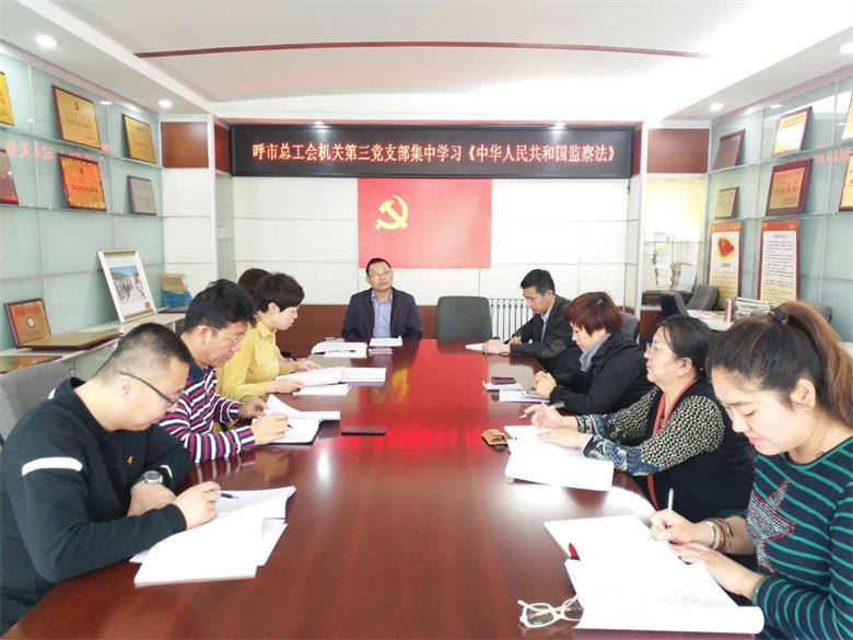4月4日上午,市总工会机关第三党支部组织理论学习,集中学习了《中华人民共和国监察法》和《习近平总书记给内蒙古自治区苏尼特右旗乌兰牧骑队员们的回信》,市总工会党组成员、副主席张普刚以普通党员身份参加学习。