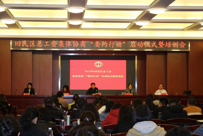 为全面贯彻落实党的十九大精神,推进工会工作法制化建设进程,进一步规范工资集体协商工作程序,加大集体协商力度,推动劳动关系和谐稳定和经济社会健康有序发展,4月3日上午,回民区总工会举行了全区工资集体协商“要约行动”启动仪式。回民区总工会副主席郭军和、女职委主任邸宁澎、职工服务中心主任尹慧璞、特邀市总工会工资集体协商指导员老师宋翠兰以及全区约200家企事业单位参加了此次活动。