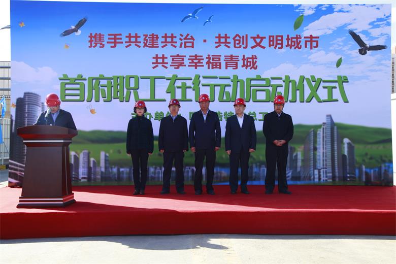 4月10日,呼和浩特市总工会“携手共建共治、共创文明城市、共享幸福青城——首府职工在行动”启动仪式在中建三局呼和浩特城市道路改造提升工程哲里木路工地正式启动。