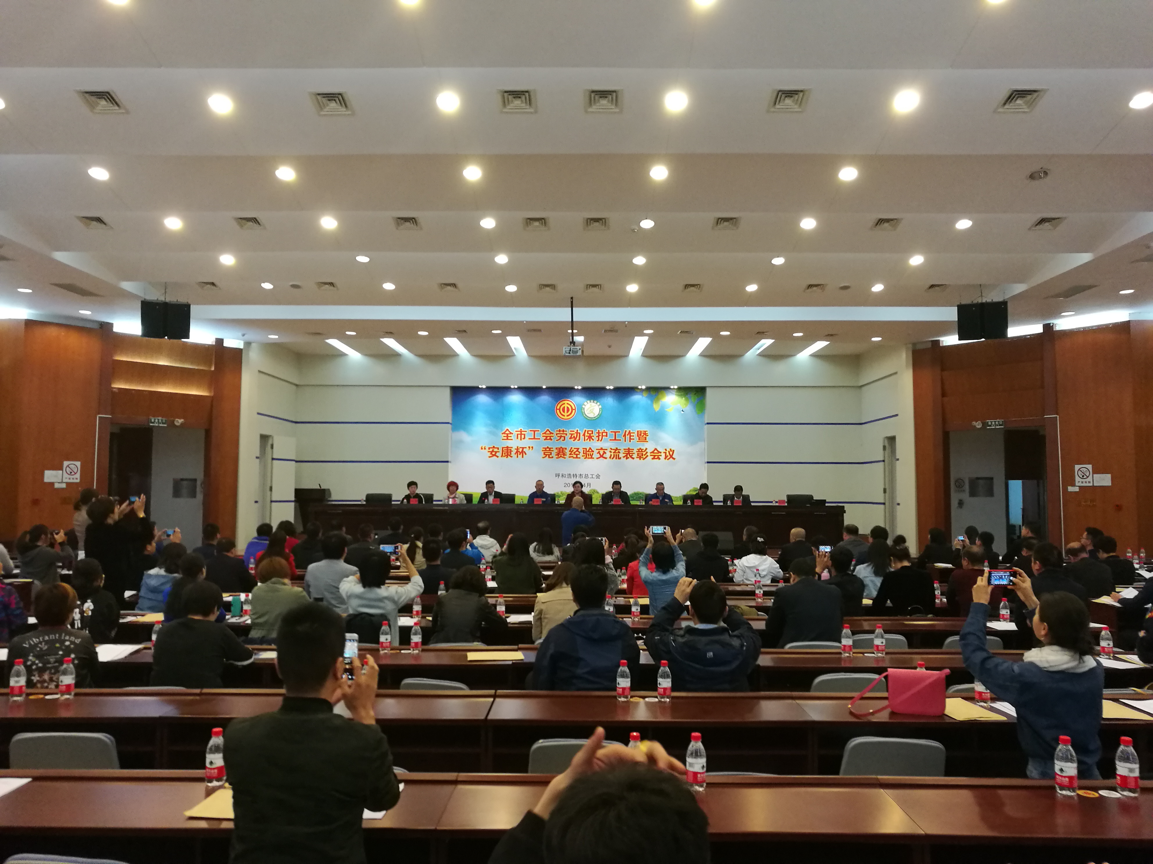 4月16日,呼市总工会召开了全市工会劳动保护工作暨“安康杯”竞赛经验交流表彰会。自治区总工会经济部部长贾丽芹出席了会议,市总工会副主席张普刚出席会议并讲话,全市各企事业单位200余人参加了会议。会议通报了2017年度全市“安康杯”竞赛活动情况并进行了经验交流;部署了2018年劳动保护工作;表彰了全市“安康杯”竞赛先进集体和个人。会后现场观摩了内蒙古昆明卷烟有限责任公司安全生产工作。