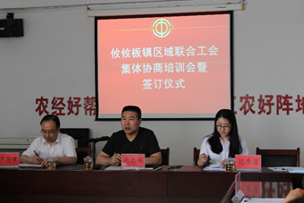 2018年5月8日,回民区总工会开展集体协商“上代下”“上参下”工作,举办了攸攸板镇区域联合工会集体协商培训会暨签订仪式,代表职工维权协商,帮助企业集体协商提质增效。