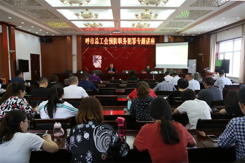 为深入推进党风廉政建设,进一步强化党员干部廉洁自律意识,5月10日下午,市总工会邀请市检察院法治教育宣传处处长孙平作预防职务犯罪专题讲座,市总工会党组书记、副主席汪俊亭主持会议,市纪委驻市总工会纪检组组长、市总工会党组成员任增刚、市总工会党组成员、副主席张瑞新、市总工会机关全体工作人员和直属事业单位负责人参加学习。
