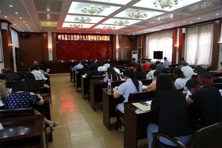 为进一步促进市总工会党员干部深刻领会党的十九大精神,激发党员干部创业热情,5月31日,市总工会在全系统组织开展了党的十九大精神相关知识测试,包括领导班子在内的机关及直属事业单位70余名党员干部参加了此次测试。