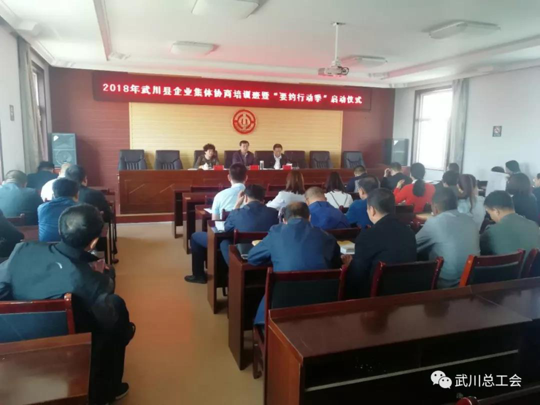 为进一步在全县深入推进行业性、区域性企业集体协商工作。5月8日,武川县总工会举办2018年武川县企业集体协商培训班暨“要约行动季”启动仪式,县总工会负责人、市总工会集体协商指导员及来自各企业的基层工会主席和干部60余人参加培训。