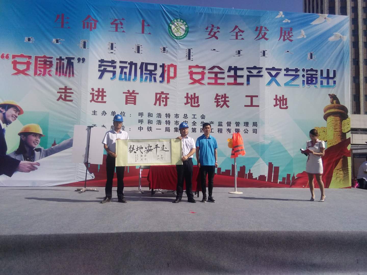为不断增强广大职工安全意识,加大劳动保护和安全生产宣传力度。6月26日上午,由呼市总工会、呼市安全生产监督管理局联合举办的“安康杯”劳动保护安全生产文艺演出在首府地铁1号线新华广场工地进行了首演。这次活动共举行四场演出,还将深入其他重点企业为职工送上精彩纷呈的高质量的表演。