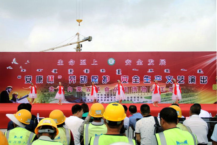 7月12日上午,由呼和浩特市总工会、呼和浩特市安全生产监督管理局共同举办的“安康杯”劳动保护安全生产文艺巡演活动走进内蒙古革命历史博物馆建设工地进行慰问演出,这也是本次文艺巡演活动的最后一站。