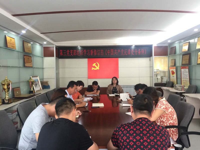 8月31日,呼市总工会第三党支部召开全体党员大会,集中学习2018年最新修订的《中国共产党纪律处分条例》。