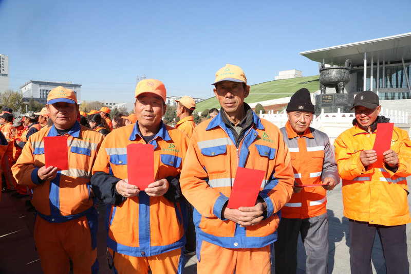 劳动最伟大、劳动最光荣、劳动最美丽,10月26日是全国“环卫工人节”,在节日即将来临之际,为了表达党和政府对广大环卫工人的关心与关爱,向长期以来辛勤工作、默默奉献的广大环卫工人致以节日的问候和崇高的敬意,向长期关心、支持和理解环卫事业的社会各界和职工家属表示诚挚的感谢,10月23日上午,在内蒙古博物馆门前广场,呼和浩特市总工会、呼和浩特市城市管理行政执法管理局、呼和浩特市环卫局联合开展了慰问环卫工人活动。来自市内四区的200名一线环卫工人参加了慰问活动,每位环卫工人拿到了200元慰问金。