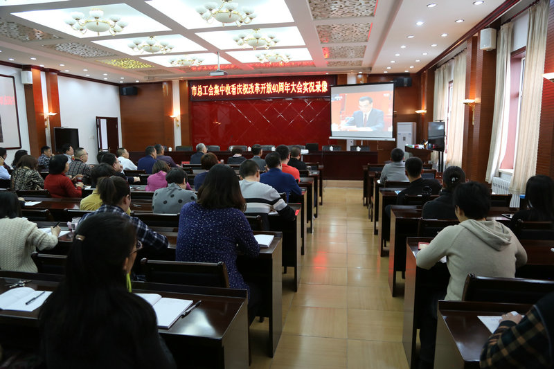 12月20日上午,市总工会组织全体党员干部收看中共中央、国务院庆祝改革开放40周年大会实况录像。市总工会党组书记、副主席汪俊亭主持集中收看活动。