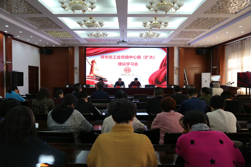 2018年12月27日,市总工会召开党组中心组(扩大)理论学习会,学习传达中央经济工作会议、市委十二届七次全会暨经济工作会议精神。市总工会党组书记、副主席汪俊亭主持会议。