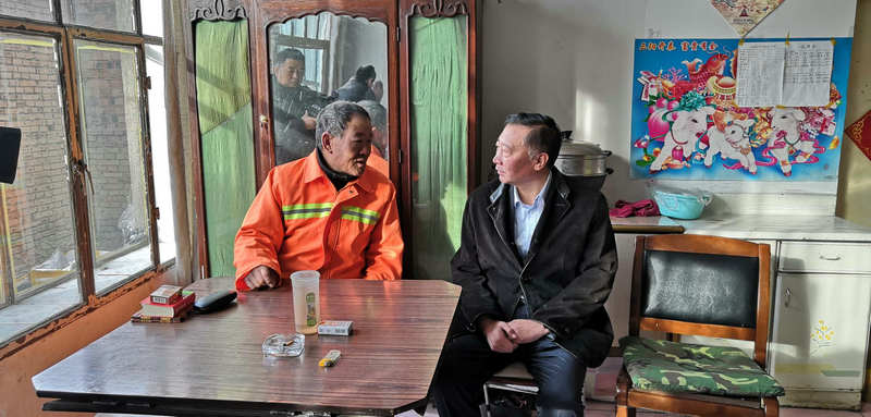 ▲斯钦毕力格慰问困难职工杨九年