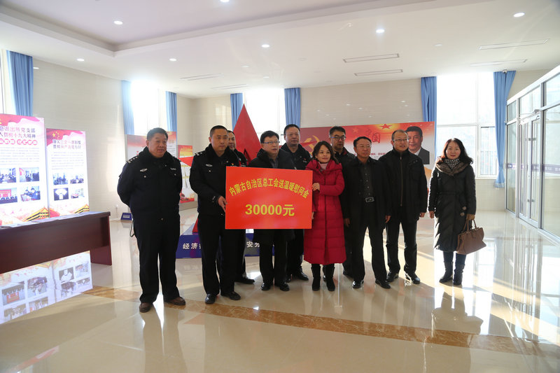 2月1日上午,自治区总工会副主席姜言文、法工部部长吴燕平、保障部副部长包迅在呼和浩特市开展春节慰问。慰问组先后来到呼市公安局开发区分局如意派出所、回民区三顺店社区社会组织孵化基地和内蒙古和盛育林有限公司,给辛勤劳动了一年的职工们带来了节日问候,并把党和政府的关怀与问候送到了职工手中。