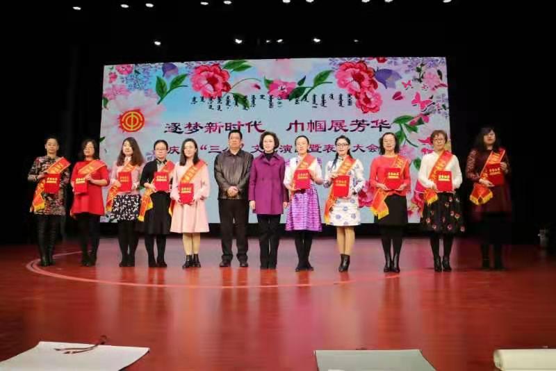 3月8日,来自医务、教育、环卫、企业、社区及各行业女职工代表近六百人,在呼市群众艺术馆演播厅欢聚一堂,召开“逐梦新时代 巾帼展芳华”呼市总工会女职工委员会庆”三八”文艺演出暨表彰大会。大会共表彰全市“五一”巾帼标兵岗(标兵)、集体、个人162个。