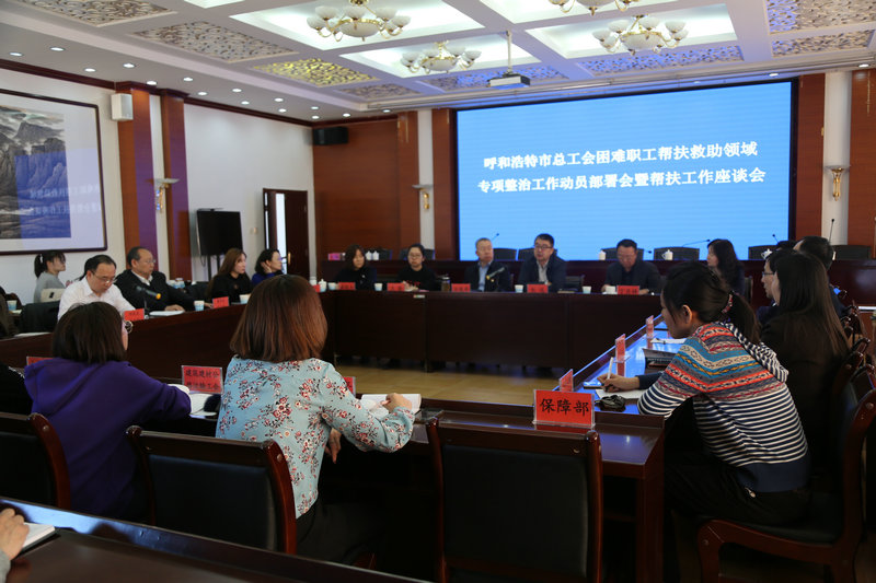 为进一步落实区总开展困难职工帮扶救助领域专项整治工作视频会议精神,扎实推进城镇困难职工解困脱困工作,了解基层工会帮扶工作具体情况和实际困难,发挥精准帮扶在困难职工解困脱困工作中的基础性作用, 推动全市困难职工解困脱困任务如期完成,3月14日,呼和浩特市总工会举办了全市困难职工帮扶救助领域专项整治工作动员部署会暨帮扶工作座谈会,市总工会党组书记、副主席汪俊亭、市总工会挂职副主席丁月祥及全市各旗县区、开发区、产业工会领导、网管员50余人参加了此次交流座谈会。