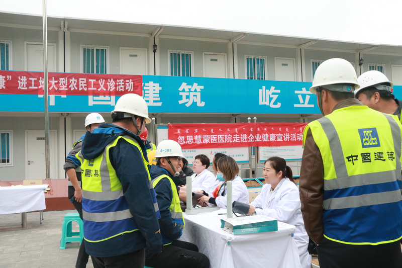 活动中邀请了忽思慧蒙医院15名医护人员、维曼斯美容美发会所4名美发师来到中建三局蒙校项目部、呼和浩特富力城项目部、呼和浩特市三环快速路一标段项目部,分别给农民工送去了免费体检和公益剪发活动。