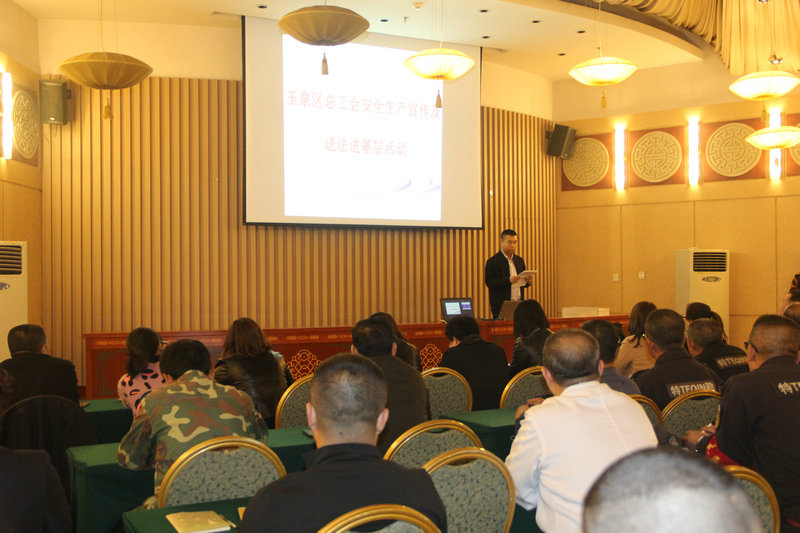 为进一步督促生产企业抓牢抓紧安全生产,提高企业经营管理者和职工的法律观念,同时加强农民工法治宣传教育,提高农民工法律意识,使其依法依规生产,从源头上杜绝安全事故发生。3月27日下午,玉泉区总工会干部深入驻区企业内蒙古东方甘迪尔蒙古风情园有限公司开展安全生产宣传及送法进基层活动。