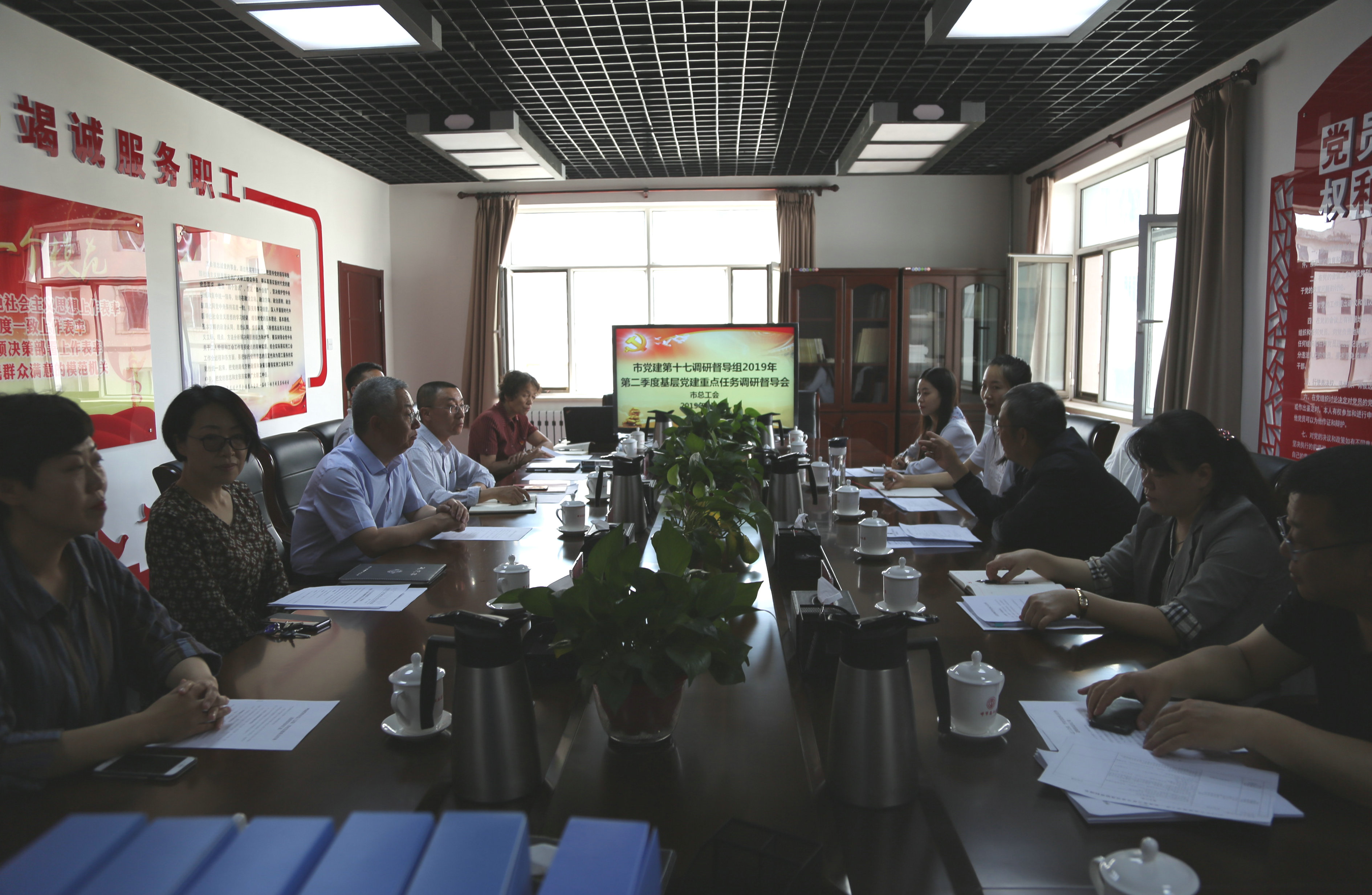 6月5日,市党建第十七督导组组长杨国臣、副组长戈银玲、成员陈海旭、潘鹏飞、青格勒一行5人对市总工会2019年第二季度基层党建重点任务进行了督导检查。市总工会党组书记、汪俊亭、机关党总支委员及各支部书记参加会议。